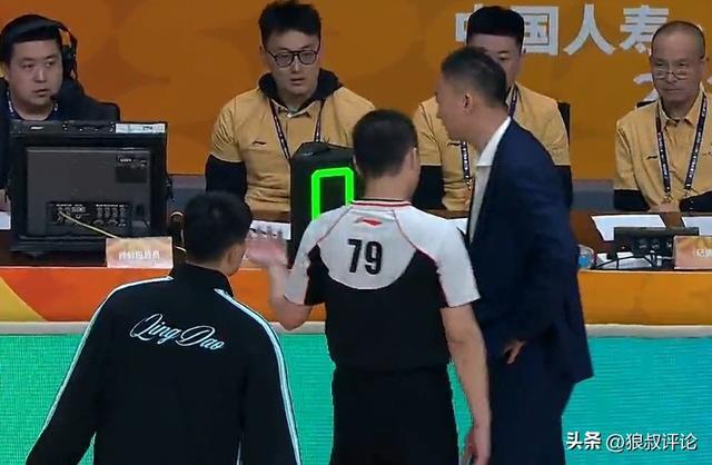 青岛男篮主帅刘维伟非常生气,直接冲到球馆内质疑裁判,认为是一个垫脚违体犯规引刘维伟不满,而三名裁判通过录像回看后,最终,升级为违体犯规。